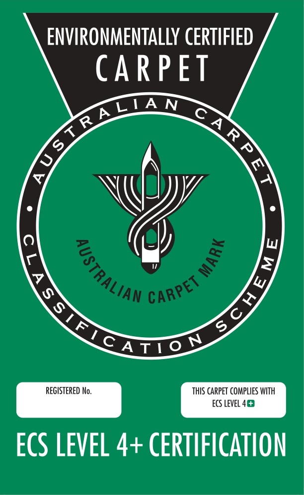 Products are tested by NATA-accredited laboratories for low VOC emissions, recycled content, acoustic and thermal performance, and end-of-life recyclability. Certified items earn an ECS Level 1–4 rating, displayed alongside ACCS grading on labels.